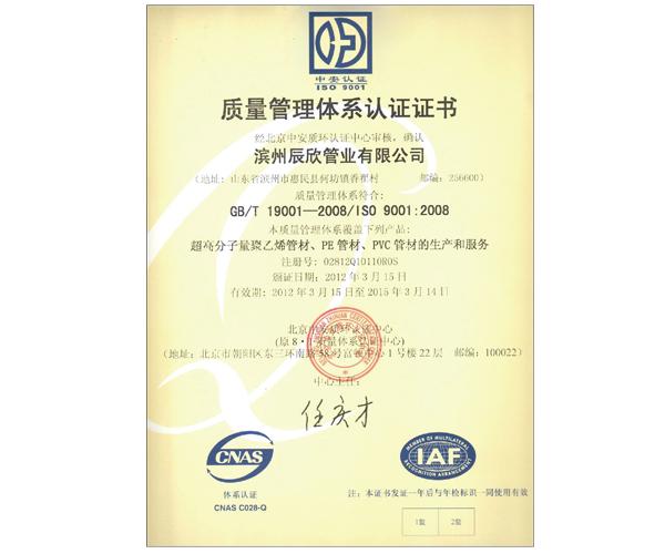 質量管理體系認證證書